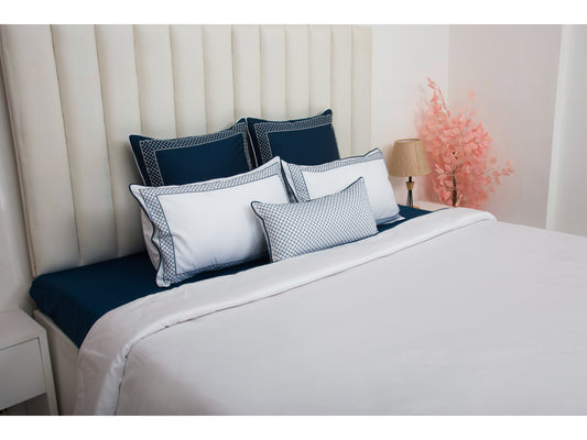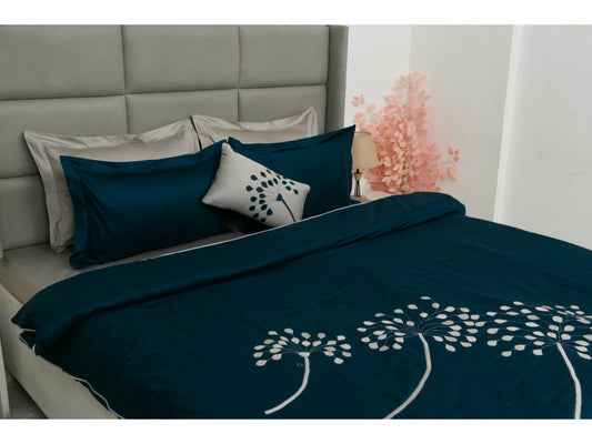 EMBROIDERY BEDDING SET 100% COTTON (9PCS,BRIGHT BLUE)