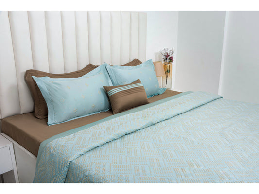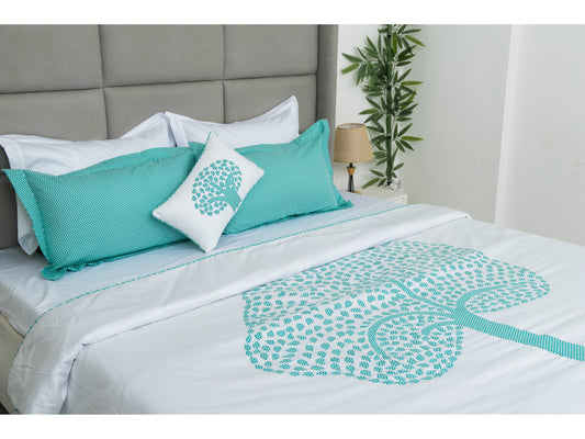 EMBROIDERY BEDDING SET 100% COTTON (9PCS,AQUA GREEN)