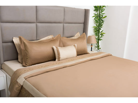 APLIC HAND WORK BEDDING SET 100% COTTON (TAUPE,9 PCS)