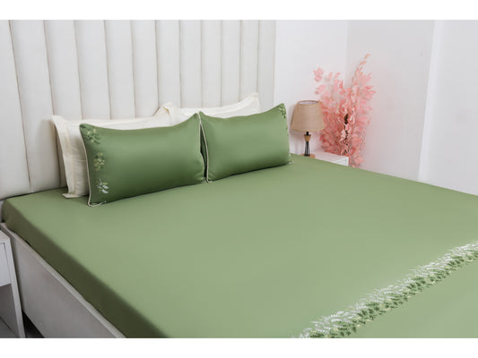 EMBROIDERY BEDSHEET 100% COTTON (3PCS, MOSS GREEN)
