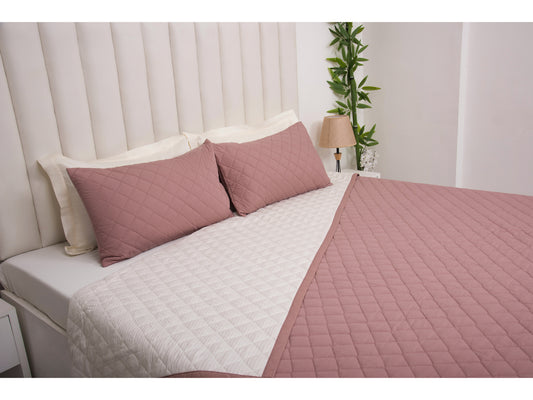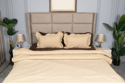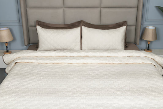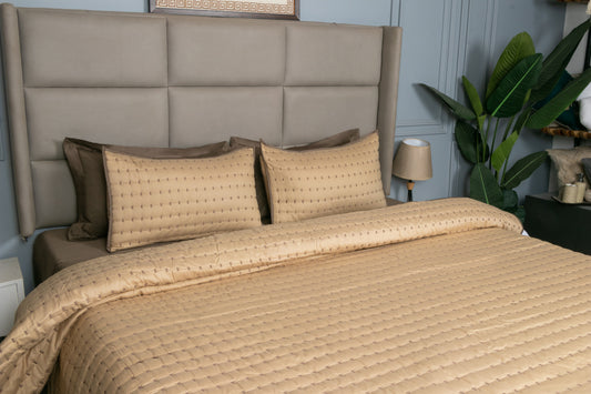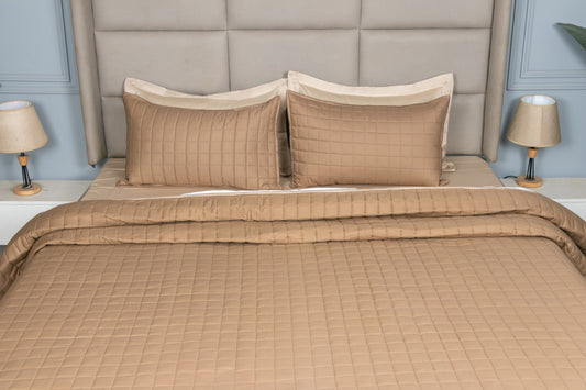 BEIGE LUXE GRID QUILTED BEDSPREAD (3 PCS)