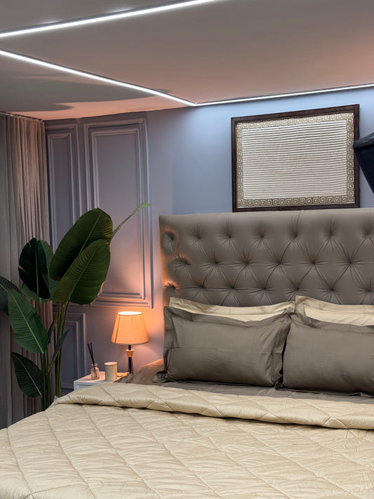 PREMIUM BEDSHEET WITH COMFORTER SET (BIEGE, 4 PCS)