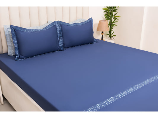PRINTED WITH PATCH WORK 100% COTTON BEDSHEET (3PCS, BLUE)