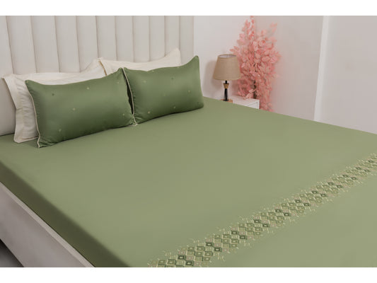 EMBROIDERY BEDSHEET 100% COTTON (3PCS, MOSS GREEN)
