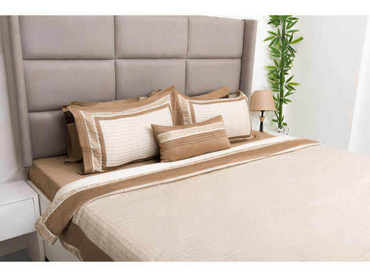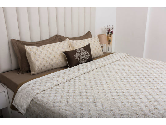 BEDSHEET WITH DOHOR SET 100% COTTON (4 PCS, PEARL WITH TAUPE)
