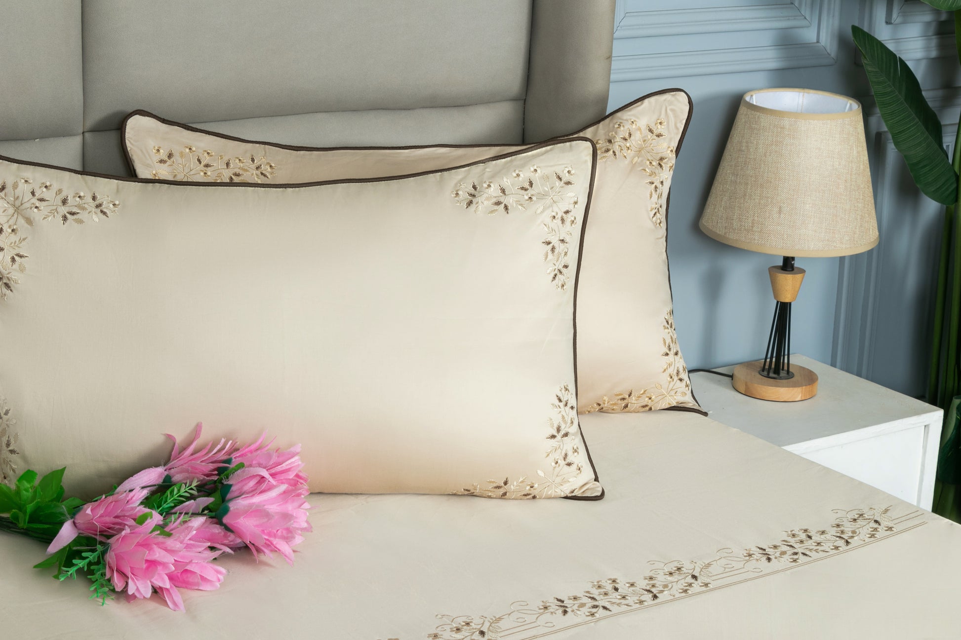 2 Embroidery Pillow Covers (17 Inches By 27 Inches)