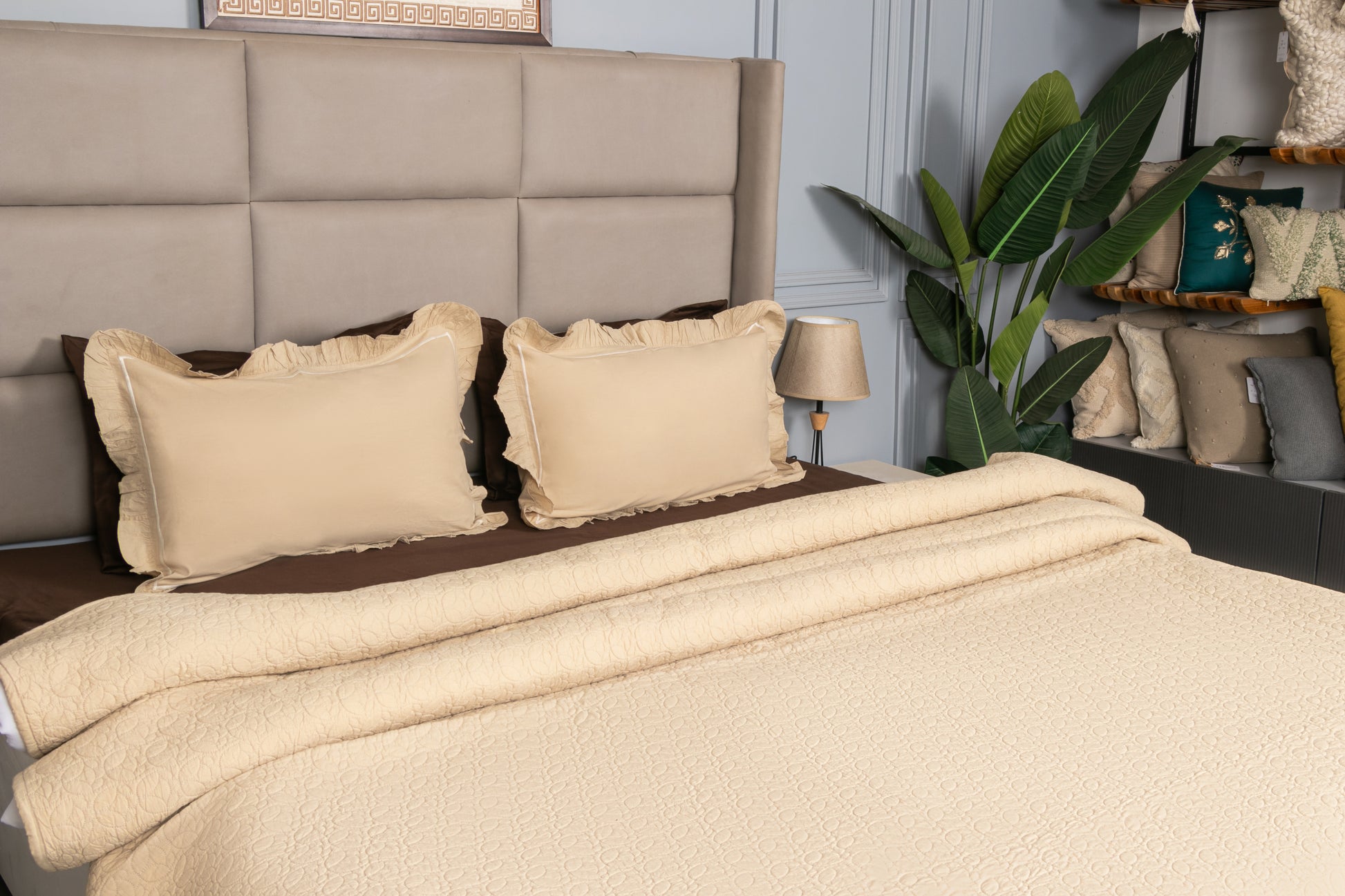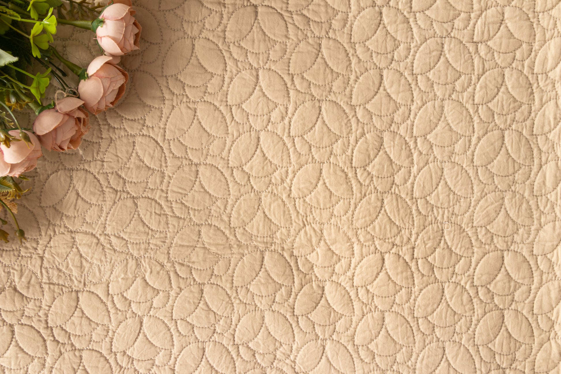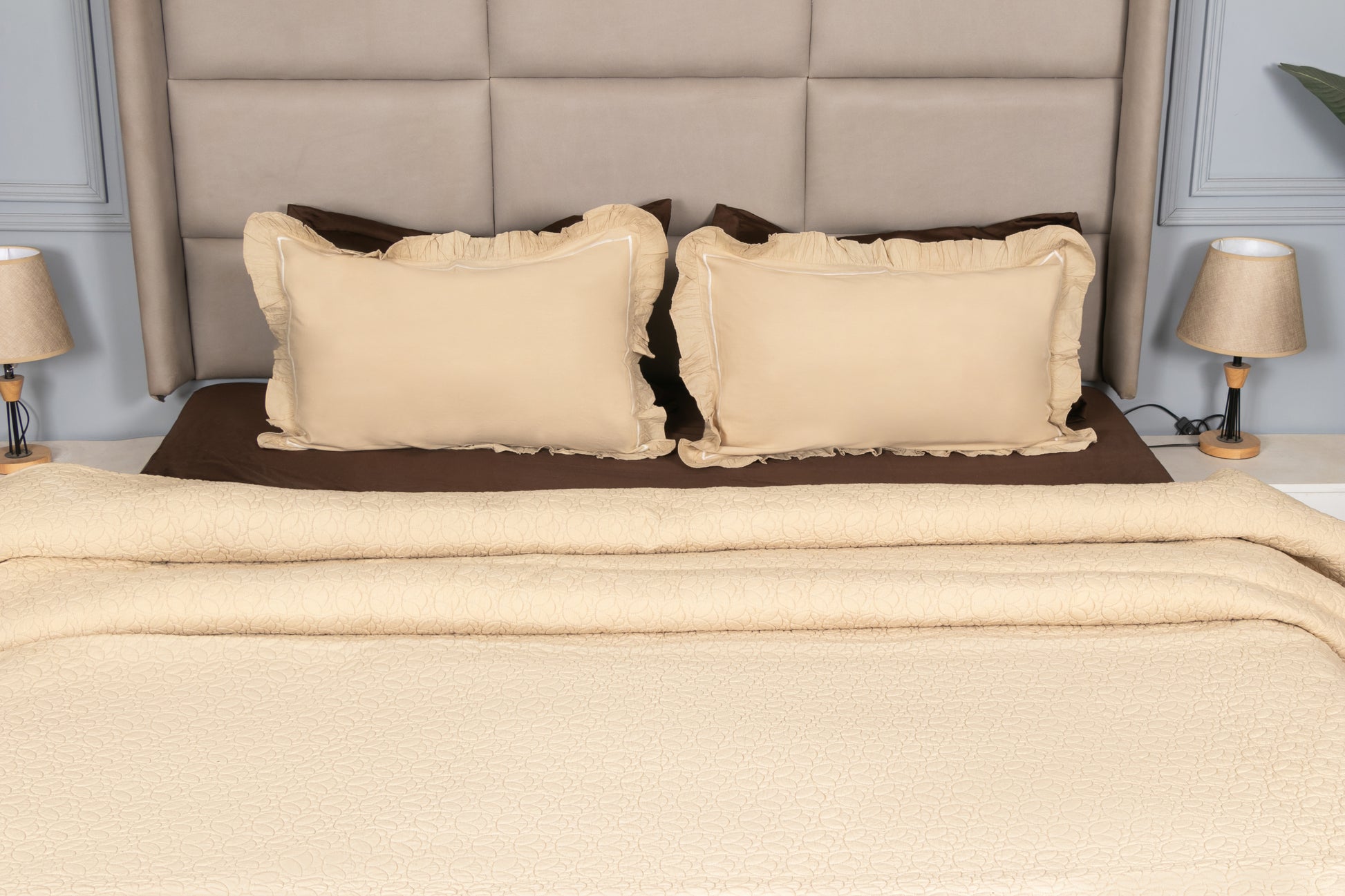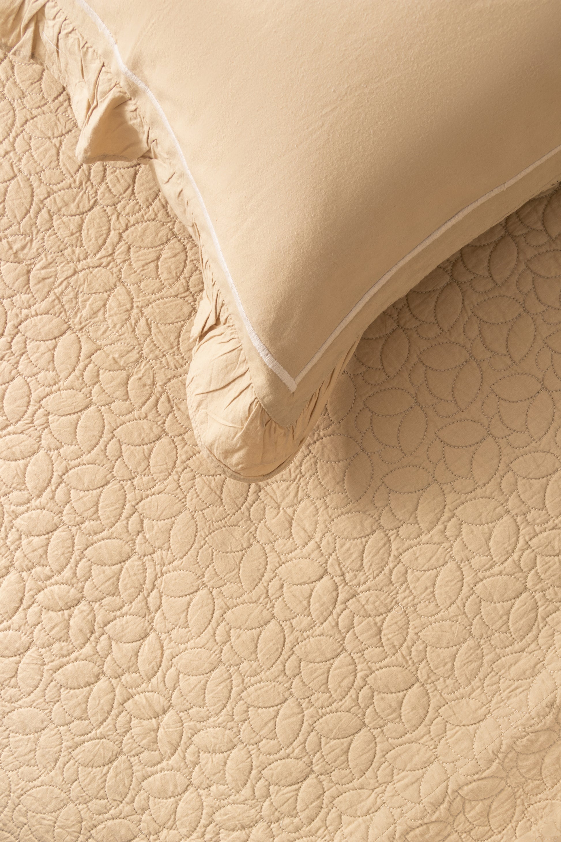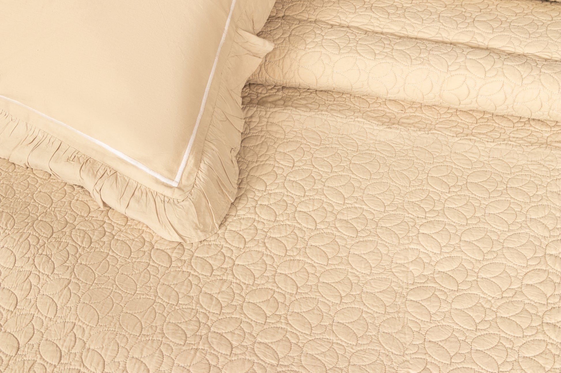 SCALLOPED LEAF QUILTED BEDSPREAD (BEIGE, 3PCS)