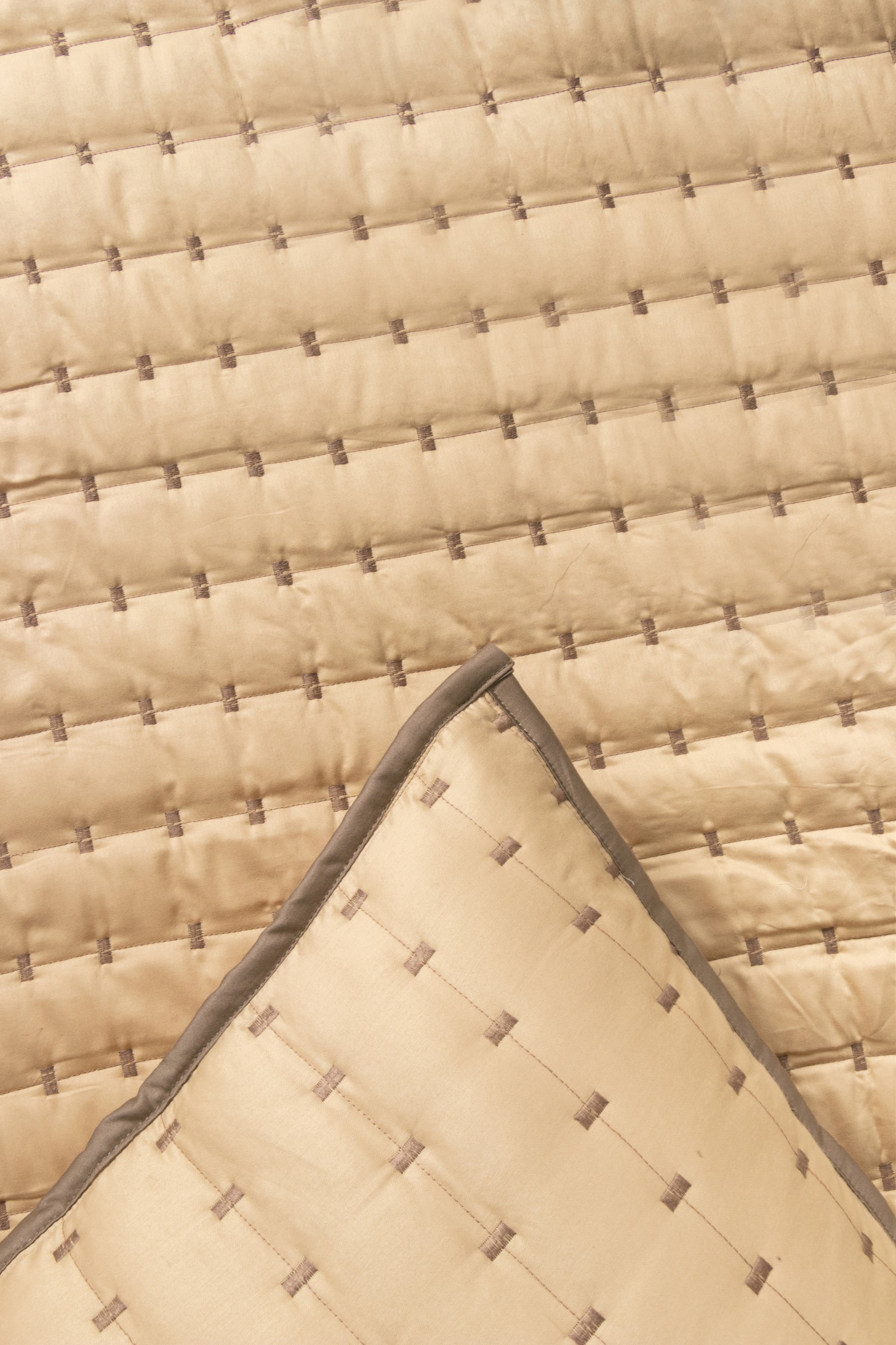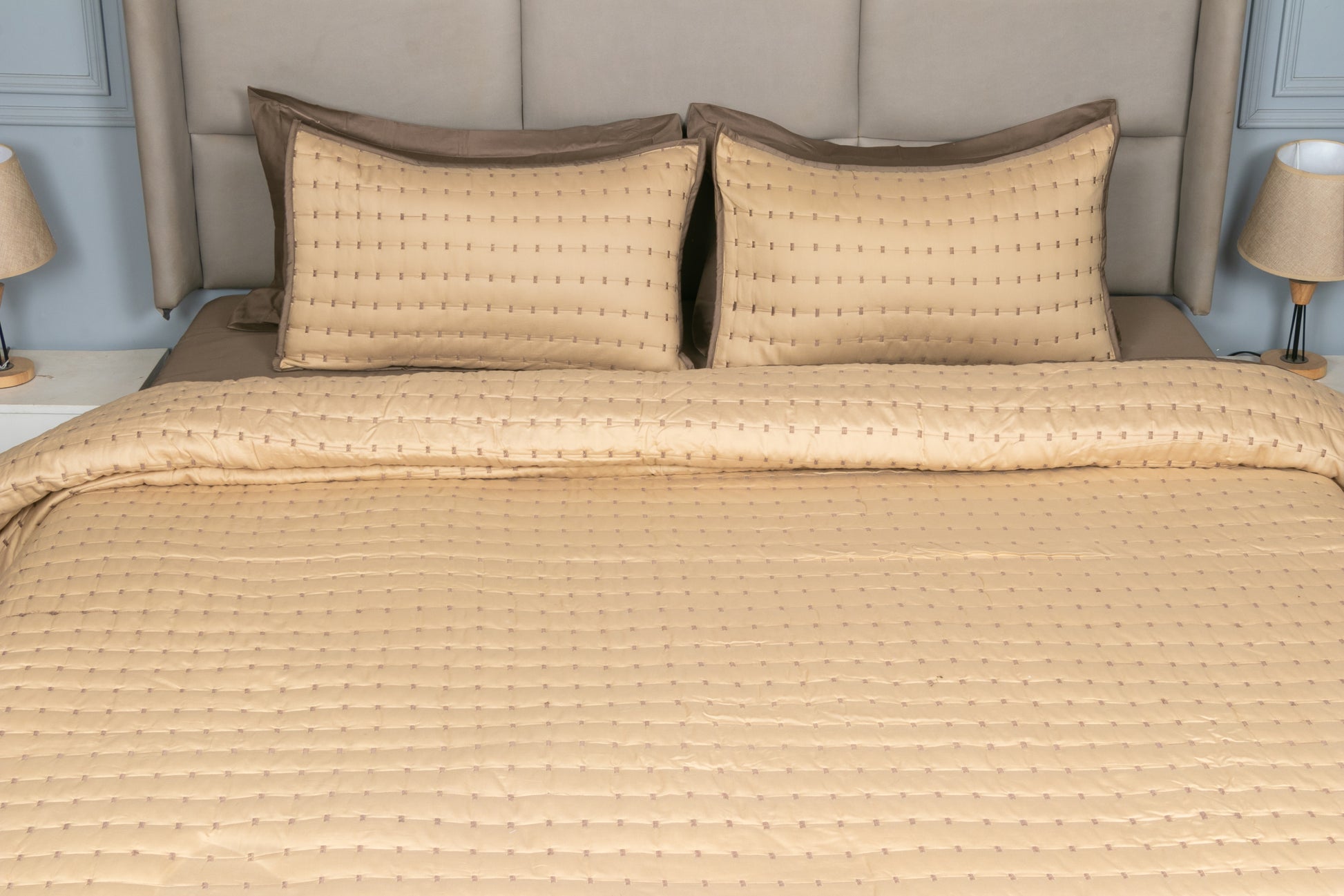 BEIGE LUXE GRID QUILTED BEDSPREAD (3 PCS)