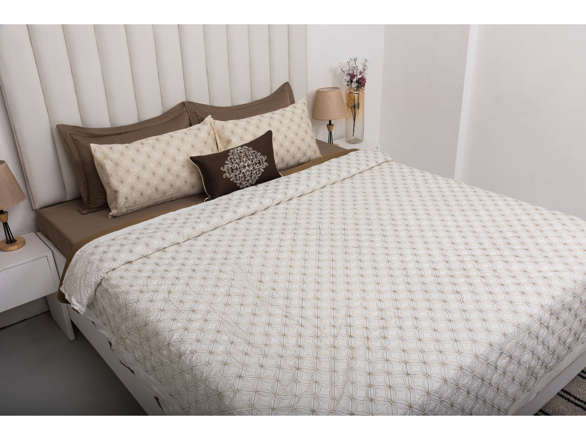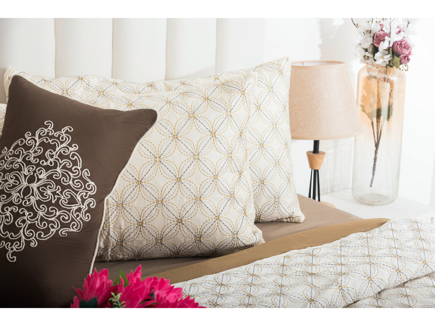 EMBROIDERY BEDDING SET 100% COTTON (9PCS,CREAM)